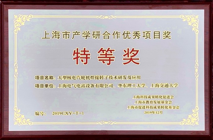 近日,2019年度“上海市产学研合作优秀项目奖”表彰大会在上海市政协礼堂隆重举行,太阳集团tcy8722轩福贞教授团队参与的产学研项目“大型核电汽轮机焊接转子技术研发及应用”荣获特等奖。