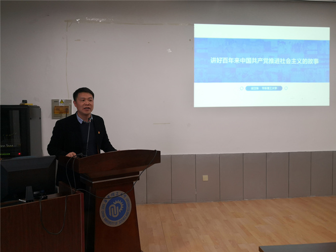 为深入学习贯彻习近平总书记在党史学习教育动员大会上的重要讲话精神,按照学校部署安排,3月16日下午,机动学院在徐汇校区实验10楼301室召开党史学习教育动员会暨首场报告会。马克思主义学院党委副书记、副院长邱卫东副教授受邀作了题为“讲好百年来中国共产党推进社会主义的故事”专题辅导报告,机动学院全体教职工参加。报告会由机动学院党委书记杨强主持。