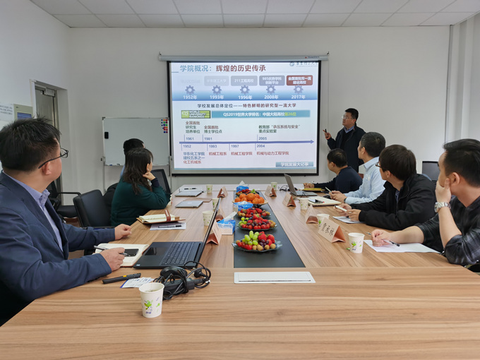 朱艳兵博士则从制氢历史、人才队伍、科研成果等方面介绍了718所近些年的发展概况,并重点聚焦当下氢能产业化技术的发展趋势,表达了与机动学院开展长期合作的意愿。随后刘博、曹军、杨雪晶等分别介绍了自己在相关领域的研究成果与愿景,与会的复旦大学龚鸣教授介绍了近期与718所合作的进展。会后,陶志杰一行参观了机动学院实验室,双方就科研合作、人员交流、科研创新等方面进行了深入交流。