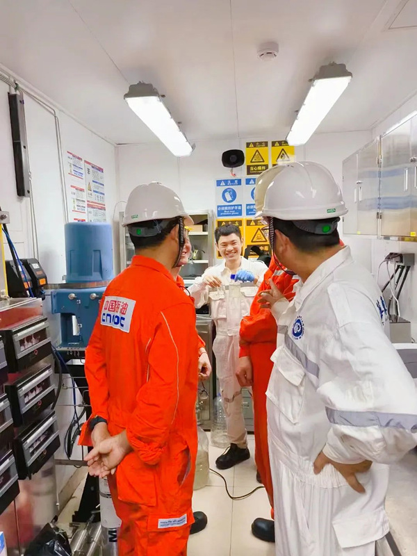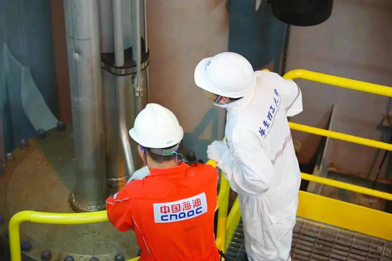 华理科研人员和中海油工作人员工作照
