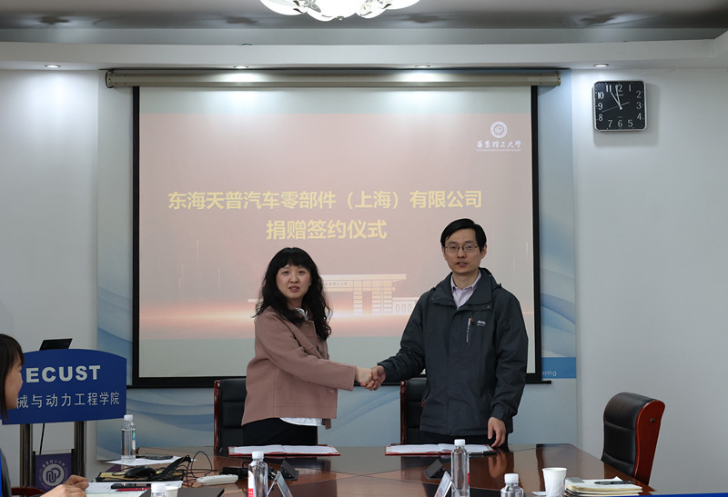 4月25日,太阳集团城娱8722在实验17楼308会议室举行“东海天普汽车零部件(上海)有限公司捐赠签约仪式”。东海天普汽车零部件(上海)有限公司人事总监孔玲玲一行出席捐赠仪式。太阳集团城娱8722党委书记杨强、副院长陈建钧、党政办公室主任冉博以及学院教师代表、学生代表出席活动。捐赠仪式由陈建钧主持。