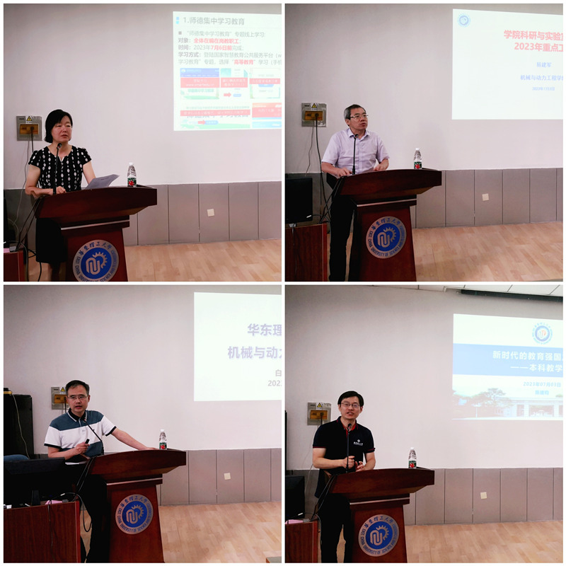 学院党委副书记李煜佳,副院长易建军、白志山、陈建钧依次围绕教师思政和纪委工作、科研和学科建设、研究生工作和本科教学工作等各自分管领域进行本学期工作总结。会上,学院为参与本科招生的教师们制作了专题视频,感谢学院教师们为提升优质生源的主动担当作为,充分展现了机动学院优良的工作作风和奋发有为的精神风貌。