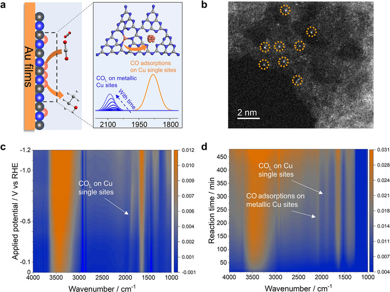 图片说明:Cu单原子的形貌结构以及现场原位探测过程示意图
