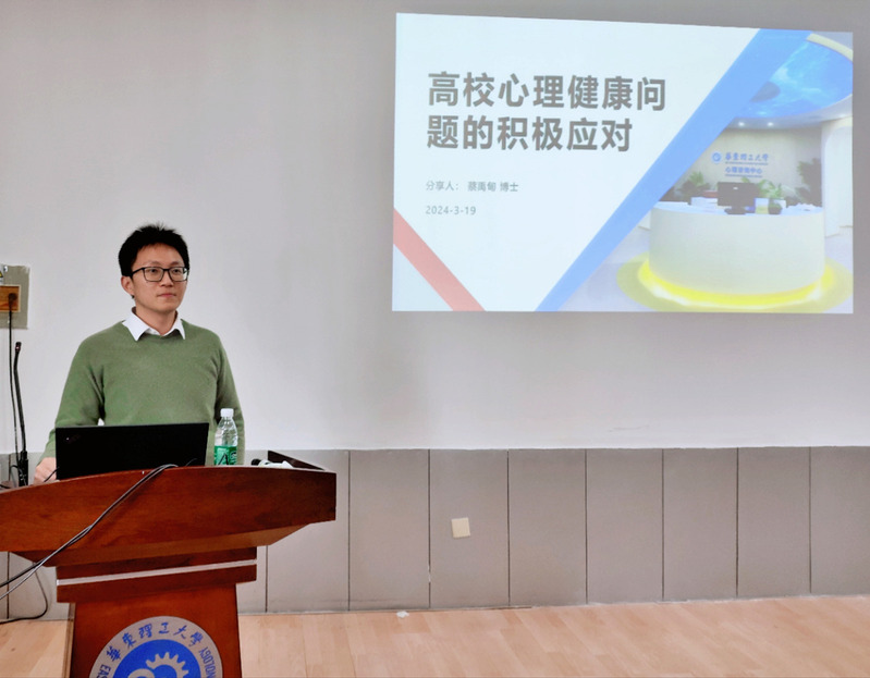 蔡禹甸就大学生心理健康问题的识别、心理问题的应对、和困难学生的沟通技巧、危机来临时的处理方法、教师的心理压力缓解等方面开展了专业知识分享。他从国内高校的心理健康现状出发,辅以大学生常见心理问题的具体案例,详细讲解了学生心理危机干预策略和学生心理健康沟通要领,呼吁大家要以“我们都是彼此的力量来源”的积极状态,全力以赴做好学生的心理健康工作。讲座深入浅出、内容充实、案例丰富、语言幽默,受到在场老师的一致好评。