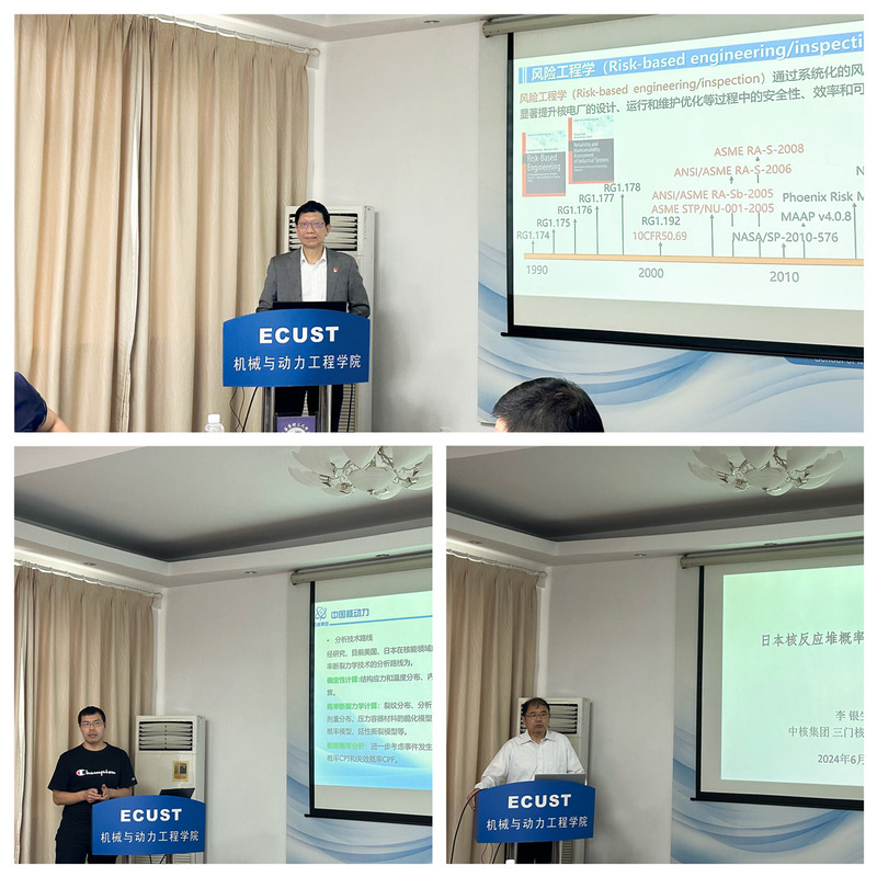 在技术研讨环节,双方围绕压力容器的概率断裂力学方法进行了深入交流。涂善东围绕核反应堆压力容器完整性评定方法、焊接接头及管道、核电汽轮机焊接转子结构、新型核电系统、评价方法与规程等方面介绍了核电结构完整性与安全若干研究进展情况。李银生介绍了核反应堆概率断裂评定方法,详细讲述了概率断裂力学的发展、概率断裂力学在核电领域的应用等方面的内容。石凯凯分享了概率断裂力学技术、技术推动路线、技术应用研究及相关交流议题等内容。