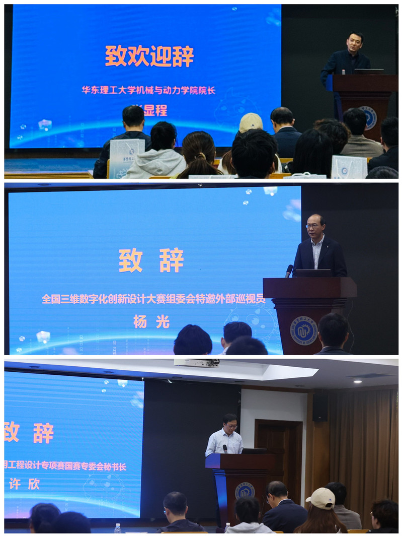 10月27日,2024第17届全国三维数字化创新设计大赛“云道杯”CAE仿真应用工程设计专项赛(上海赛区)选拔赛在逸夫楼演讲厅开幕。全国3D大赛组委会特邀外部巡视员、河北科技大学杨光院长,北京云道智造科技有限公司创新部副部长许欣,太阳集团tcy8722机动学院院长张显程,同济大学刘广军教授,上海大学河斌教授,东南大学刘小超教授以及多所高校的师生参加了本次开幕式。开幕式由机动学院副院长陈建钧主持。