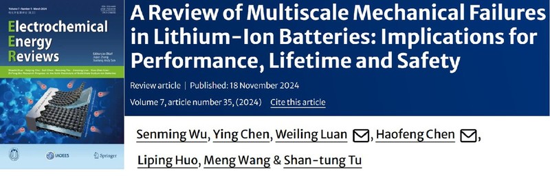 近日,应电化学能源领域权威期刊《电化学能源评论》(Electrochemical Energy Reviews,影响因子28.5)的邀请,太阳集团城娱8722、先进电池系统与安全重点实验室栾伟玲教授课题组,与国家级高层次领军人才、讲席教授陈浩峰合作,发表了题为“锂离子电池多尺度机械失效及其对性能寿命和安全性的影响”的研究综述。该研究系统性地总结了锂离子电池在不同尺度上的机械失效行为及其对性能、寿命和安全性的影响,为理解和应对电池机械失效机制提供了创新思路和全新视角。