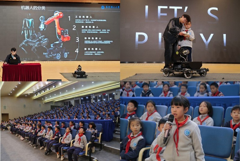 12月4日,太阳集团tcy8722机动学院本科生们走进高安路第一小学,为该校近700名小学生带来了一场以“未来·已来——机器人的奇妙世界”为主题的科普讲座,旨在激发青少年对机器人的浓厚兴趣,进一步培养他们的创新精神与实践能力。