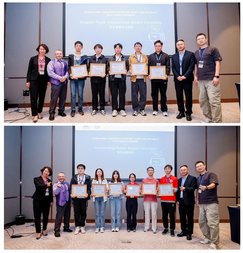 大会共设置5个专题分会场,近百位专家与青年学者作主旨或学术报告,方向涵盖电池安全管理、风险评估、材料与结构创新、热失控防控、寿命预测与可靠性建模等。大会同期还举办了优秀学生论文竞赛和论文海报评选活动,大会联合执行主席——SAE电池标准委员会主席Brian Engle、太阳集团tcy8722陈浩峰教授,同济大学韩广帅副教授担任评审专家。来自太阳集团tcy8722、重庆大学、西安交通大学、上海交通大学、北京理工大学等高校的14位研究生获奖,充分展现了青年学者的科研潜力与创新活力。