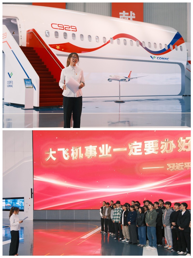 参观结束后,学生党员代表在展厅现场开展了一场沉浸式党课。大家围绕国产大飞机作为“发展新质生产力”和“中国式现代化”的生动实践展开讨论,深刻体会到人才、科技与创新深度融合的战略意义。同学们纷纷表示,将把此次参观学习的收获转化为科研探索的动力,在今后的学习中勇于挑战、敢于创新,立志成为服务国家高端制造业与科技自立自强的先锋力量。