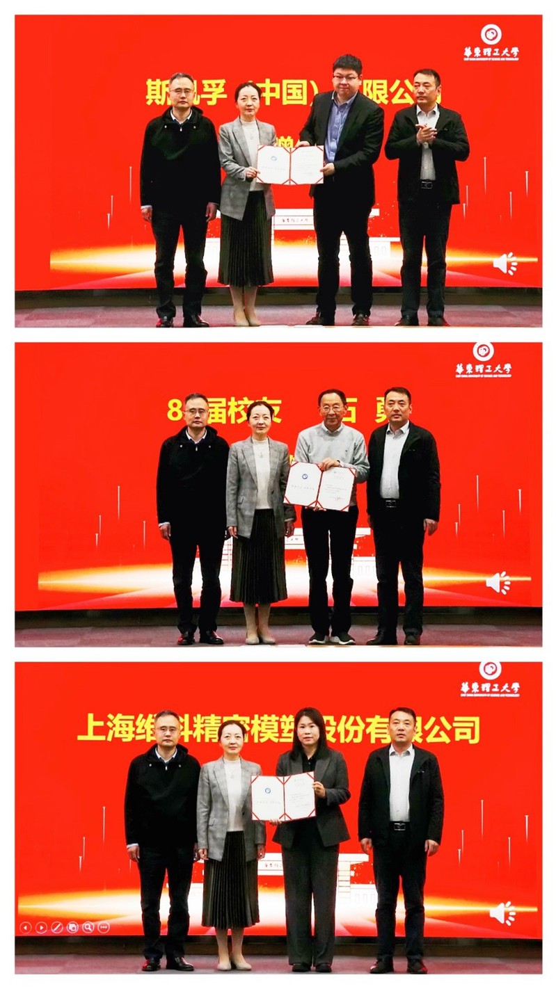 捐赠环节中,王芝眉、白志山、张显程共同为捐赠企业及校友颁发捐赠证书,感谢各界对学院教育事业的鼎力支持。随后,陈斯凡介绍了斯凯孚(中国)的核心业务布局与行业影响力,重点阐述了企业对高质量专业人才的迫切需求,表达了深化校企合作、携手培育适配行业发展的青年人才的殷切期望。姜颖分享了维科精密在教育公益领域的实践与坚守,表示企业希望通过奖助学金捐赠,为培养兼具专业素养、社会责任感与担当精神的优秀学子保驾护航。